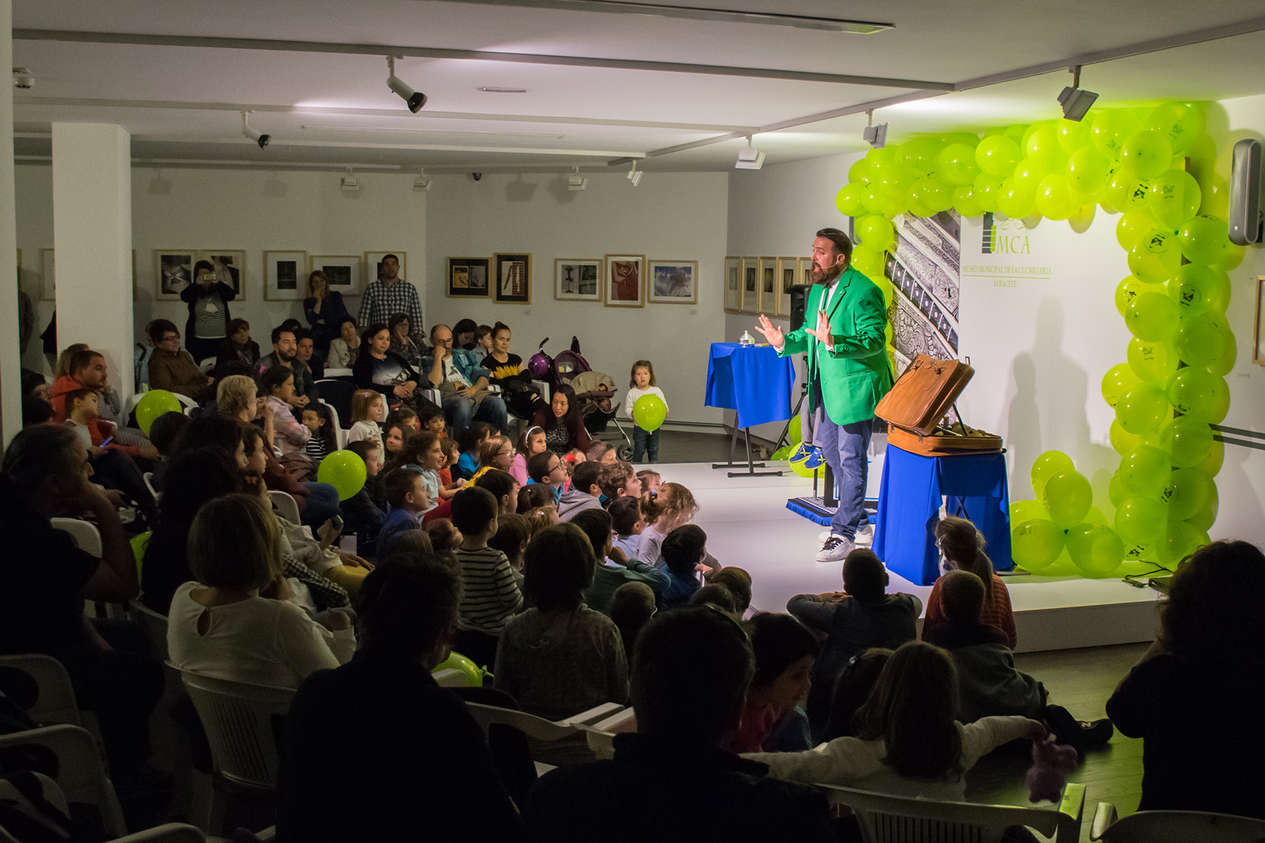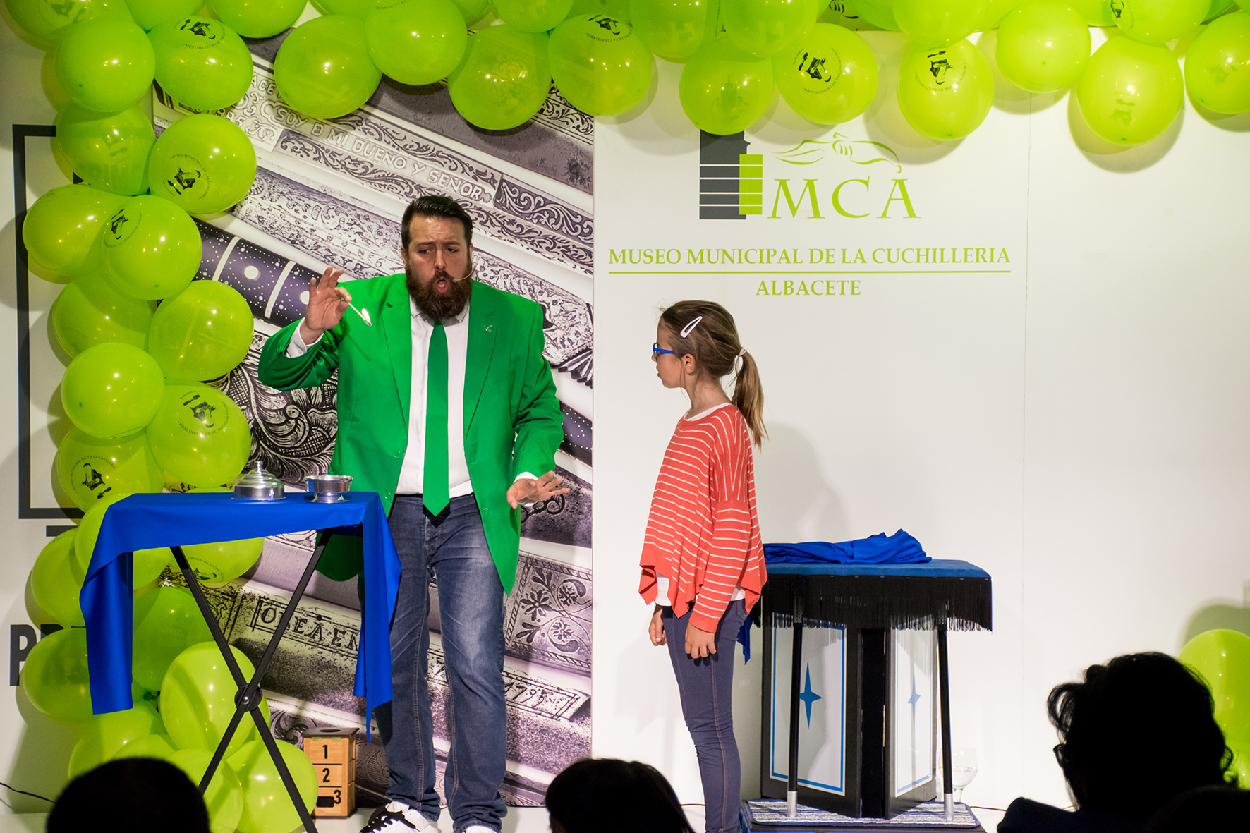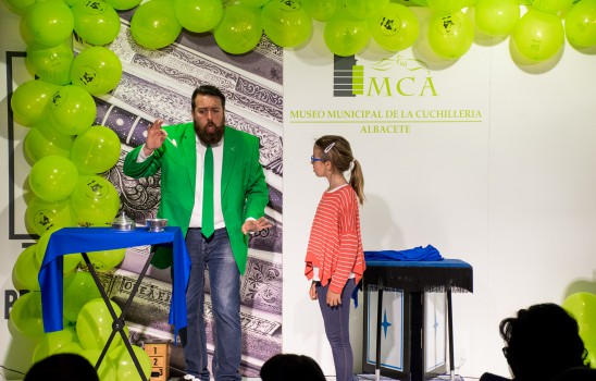 Por la tarde, este mismo grupo nos volvió a contagiar con su música, y en esta ocasión marchando alrededor de los jardines del Museo, atrayendo a un numeroso público, que posteriormente fueron invitados a participar de un espectáculo de magia de Francis Zafrilla creado para la ocasión donde se mezclaron los cuentos, la música y la magia con tres principales protagonistas: los cuchillos, las navajas y las tijeras.