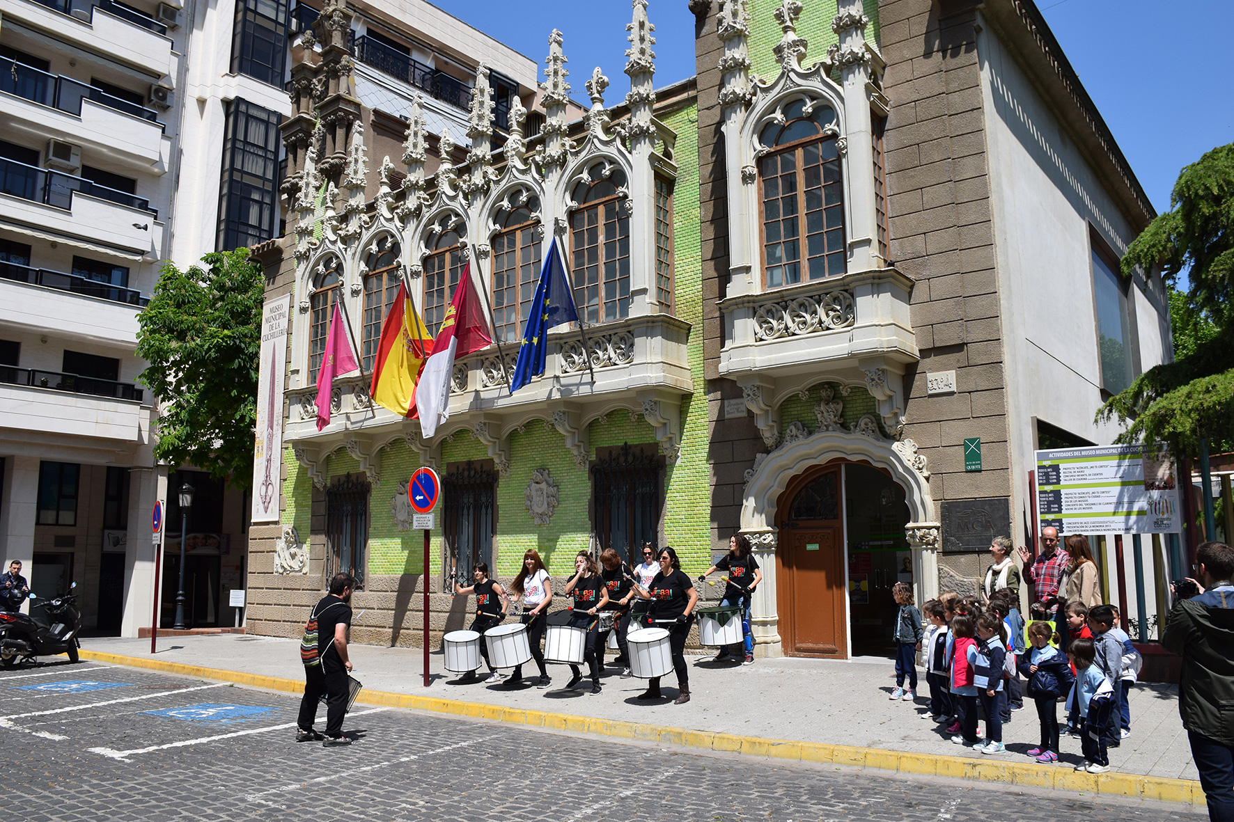El Museo de la Cuchillería comenzó el Día Internacional de los Museos dando la bienvenida con una Batucada a cargo del Grupo Los Sambasores, grupo formado por percusionistas y músicos de Albacete. La plaza del Museo se llenó de color y alegría a ritmo de percusión.