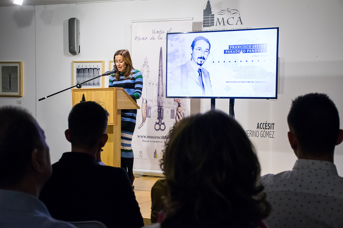 La directora del Museo de la Cuchillería, Mariana de Pascual, abrió este emotivo acto dando unas pinceladas de la semblanza, biografía y obra de este cuchillero. Seguidamente fue la familia de Panadero Panduro, quien tomó la palabra y a continuación, se proyectó un video sobre la vida del artesano, el cual puede verse en el siguiente link: video.