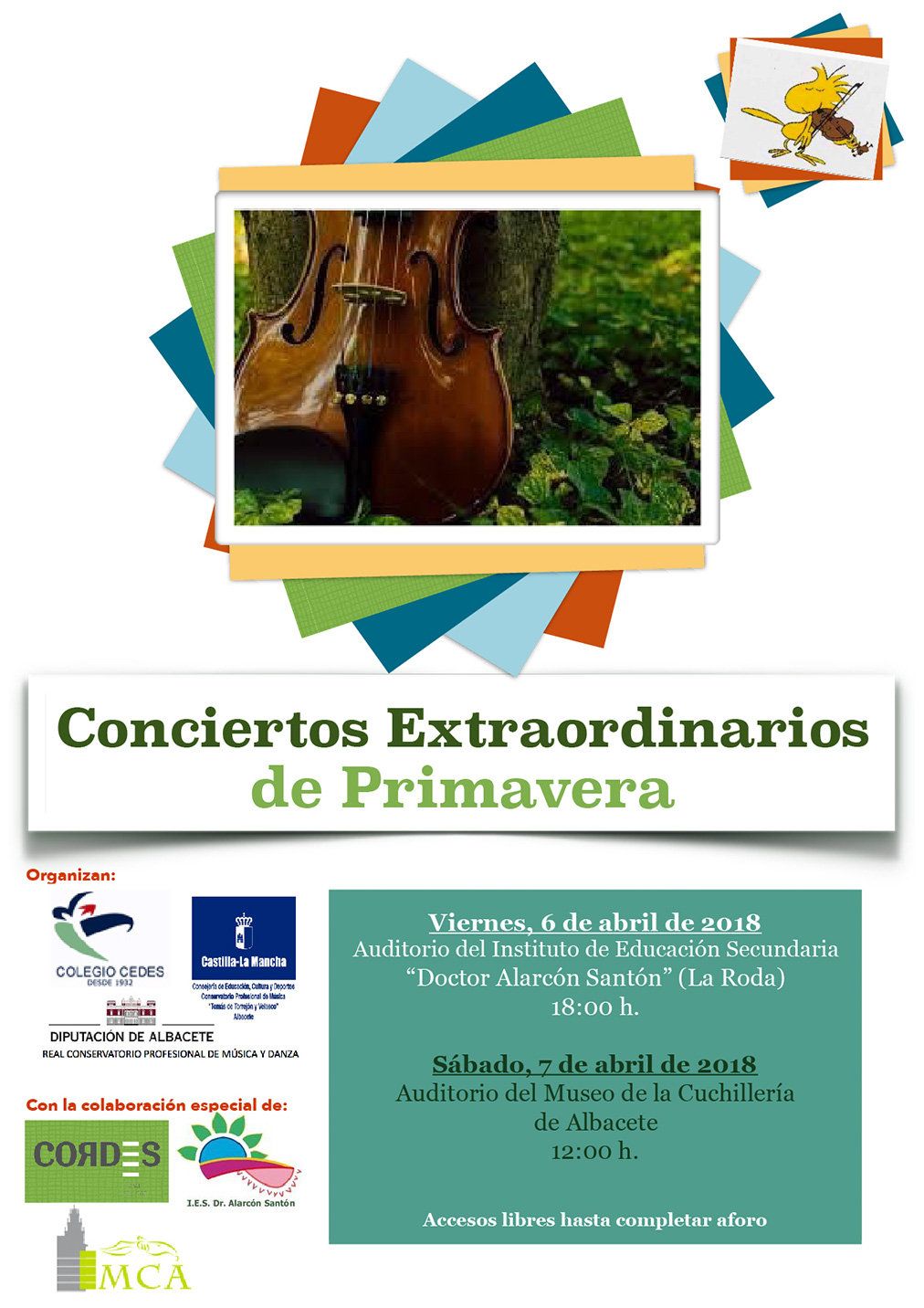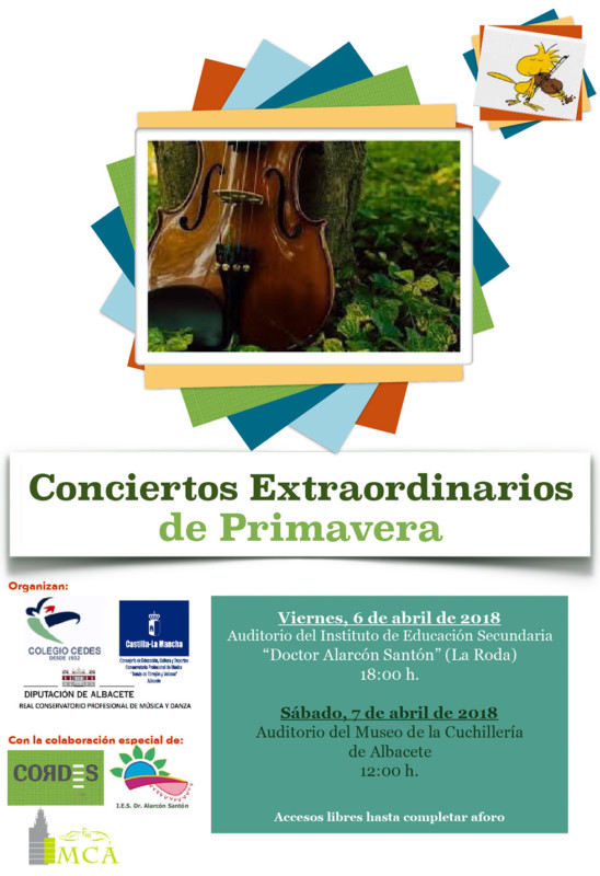 El próximo sábado 7 de abril a las 12 h. tendrá lugar en el Museo de la Cuchillería un concierto de jóvenes músicos que cursan el Método Suzuki en el Colegio Bilingüe CEDES, el Real Conservatorio de Música y Danza de la Diputación y el Conservatorio “Tomás de Torrejón y Velasco”. Alumnos de edades comprendidas entre los 4 y 16 años interpretarán obras de Bach, Elgar, Dvorak, Paganini, entre otros, junto con la orquesta de la Escuela Cordes Espai Educatiu.