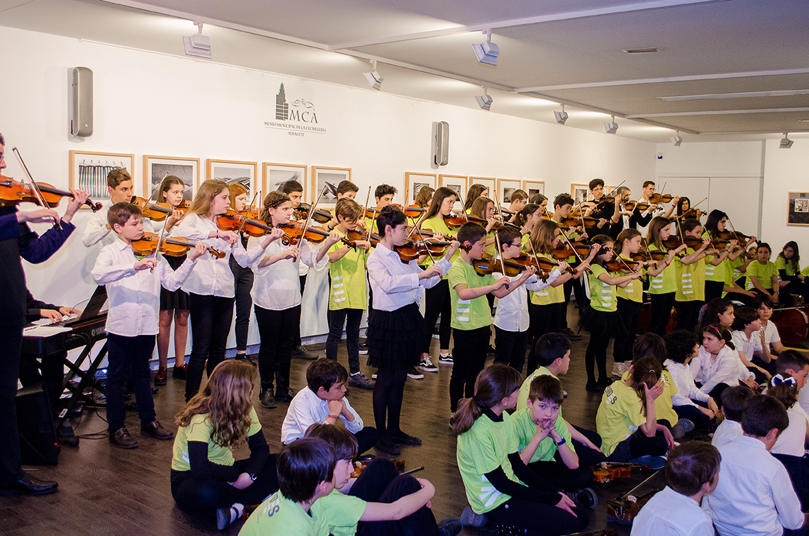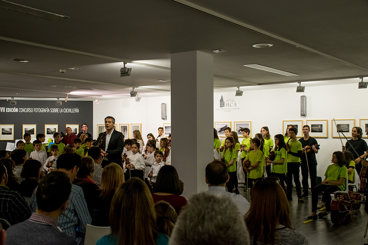 El pasado sábado 7 de abril a las 12 h. tuvo lugar en el Museo de la Cuchillería un concierto de jóvenes músicos que cursan el Método Suzuki en el Colegio Bilingüe CEDES, el Real Conservatorio de Música y Danza de la Diputación y el Conservatorio “Tomás de Torrejón y Velasco”. Alumnos de edades comprendidas entre los 4 y 16 años interpretaron obras de Bach, Elgar, Dvorak, Paganini, entre otros, junto con la orquesta de la Escuela Cordes Espai Educatiu.