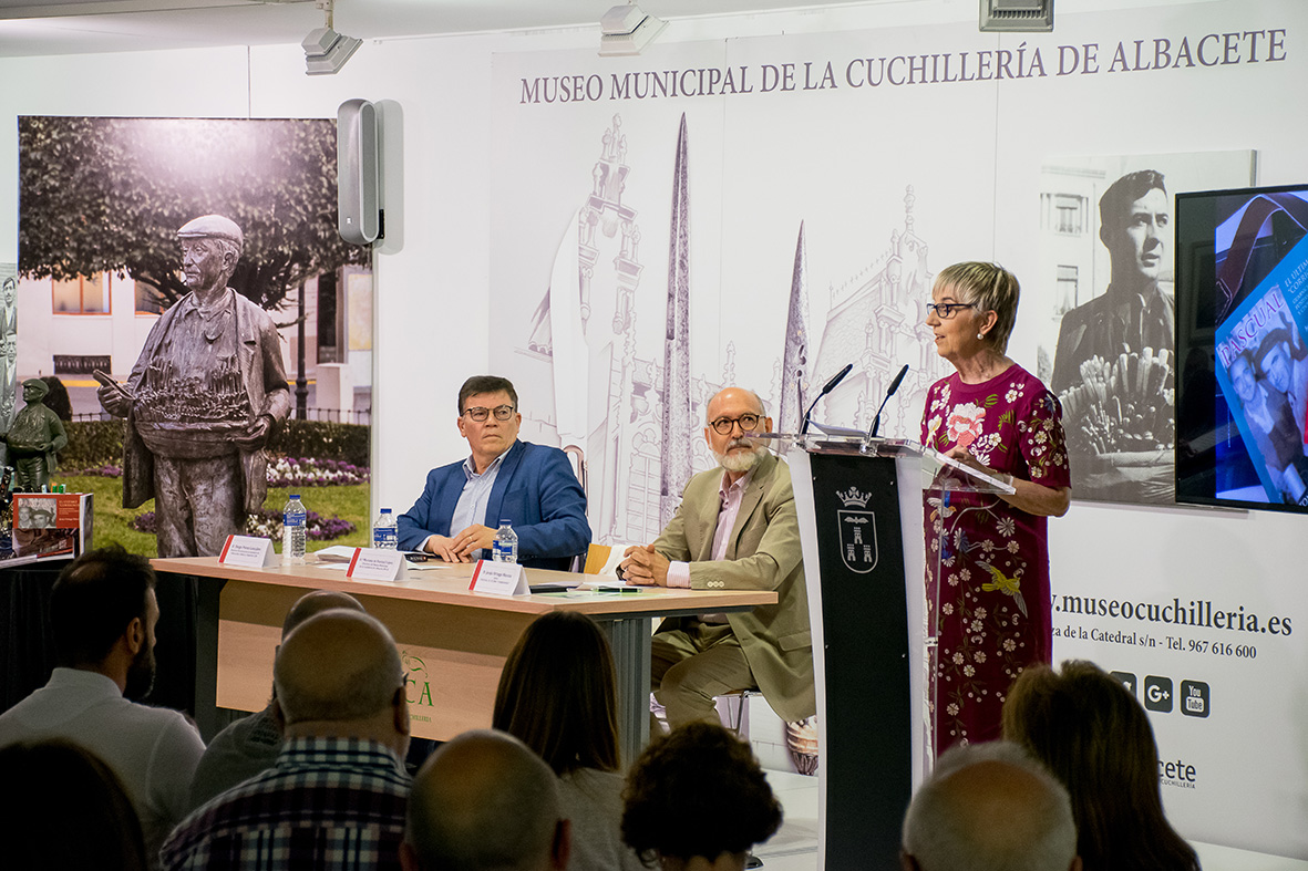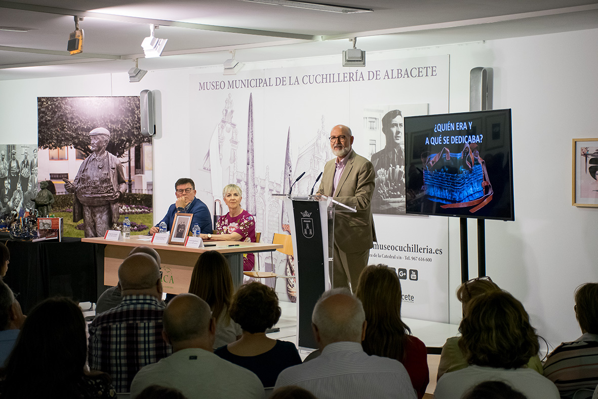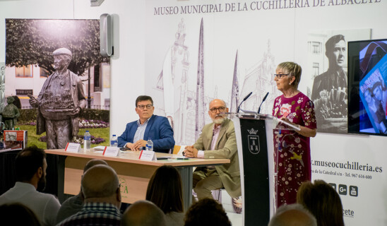 El Museo Municipal de la Cuchillería acogió la presentación del libro Pascual, el último “corrionero” – Guarniciones, fundas de cuchillo y cintos de Jesús Ortega Murcia. El acto fue presentado por Manuel del Olmo y contó con la presencia de Diego Pérez González, director provincial de la Consejería de Educación, Cultura y Deportes de CLM, y Mariana de Pascual López, directora del MCA.