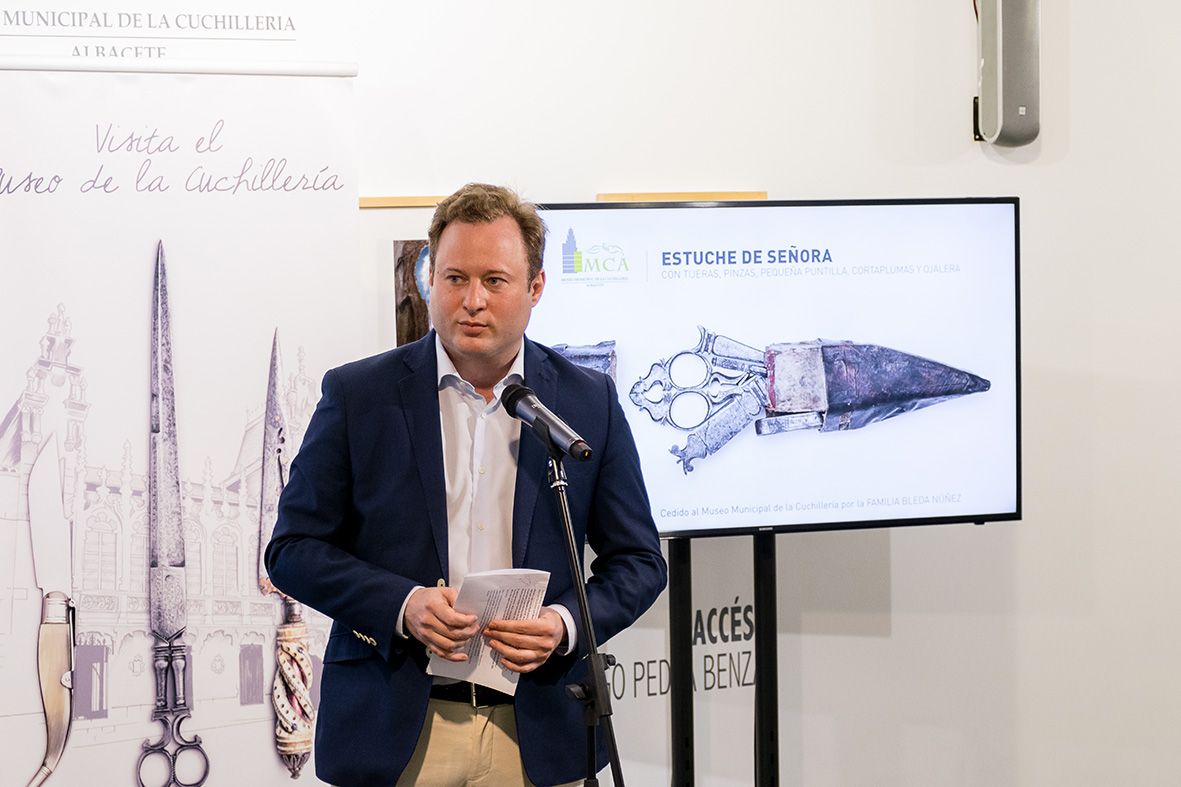 El Museo Municipal de la Cuchillería ha reabierto hoy sus puertas al público y lo ha hecho con un sencillo acto cargado de simbolismo, la entrega en depósito de una pieza de cuchillería de lo más singular, un estuche de señora fabricado en 1770 y que ha sido adquirido a un coleccionista norteamericano por Luis Bleda y Ana Núñez, matrimonio estrechamente vinculado a la cuchillería albaceteña.