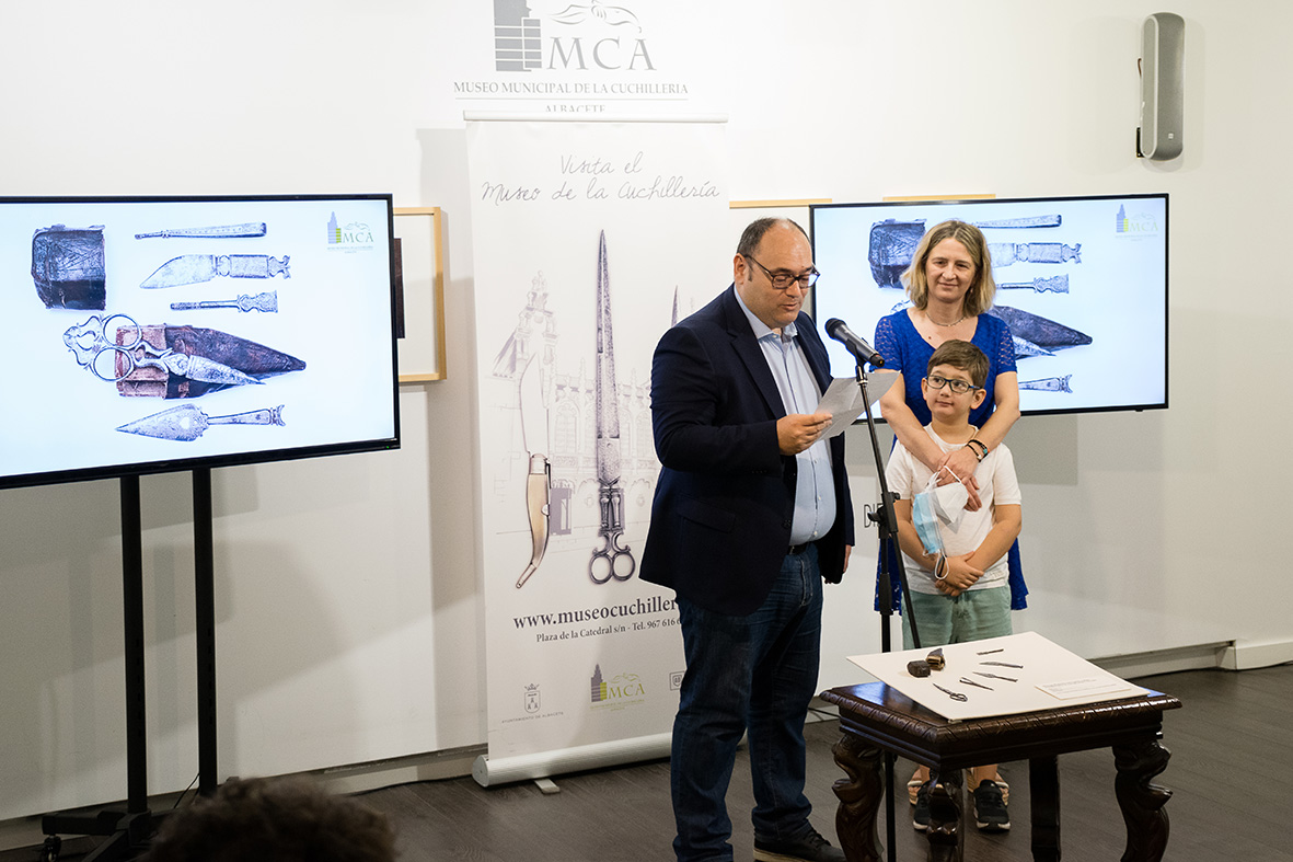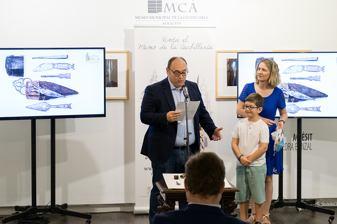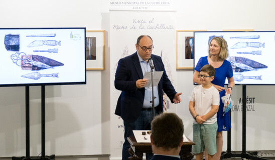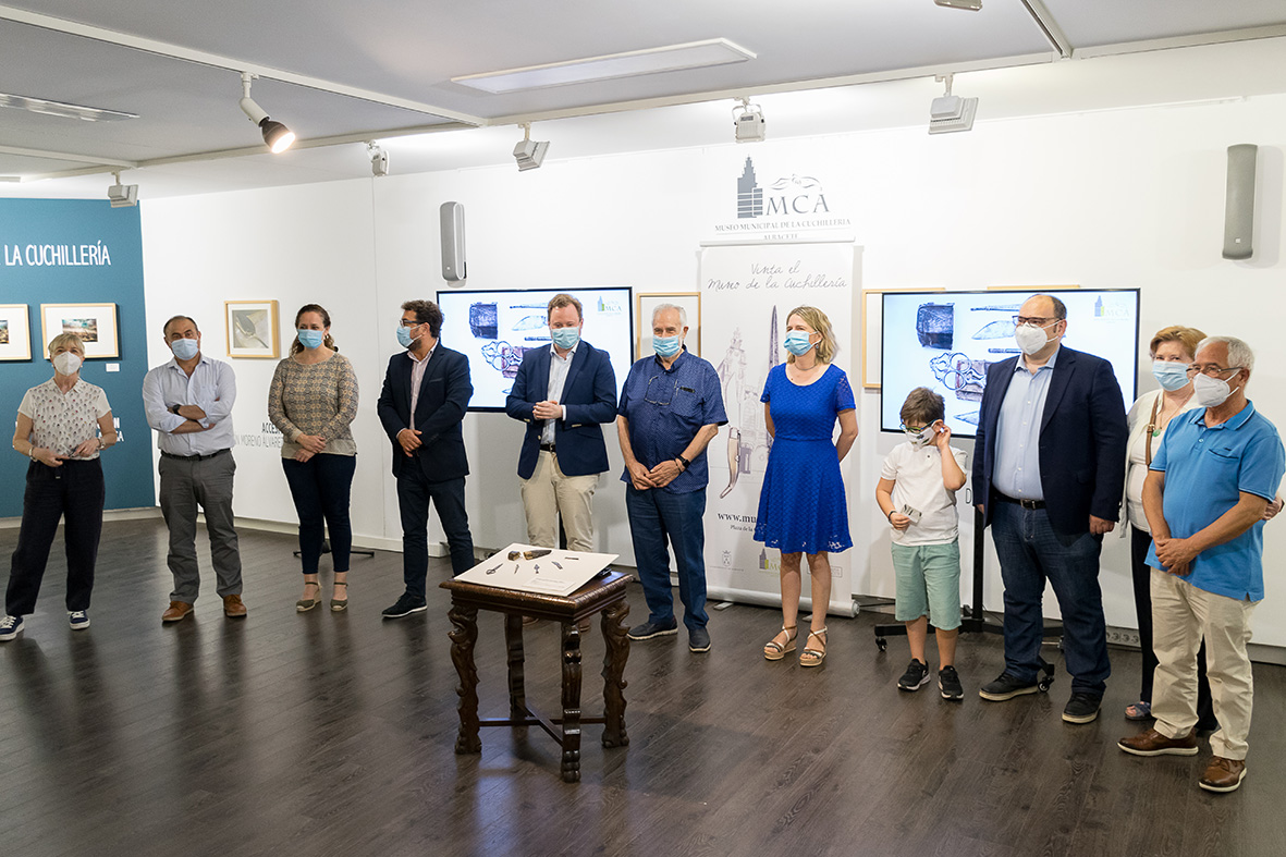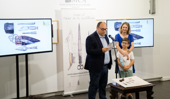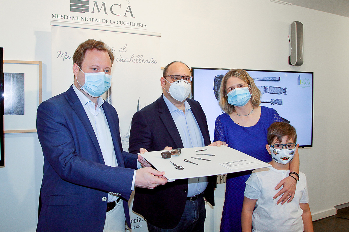 A las 10.00 de la mañana, hora en la que abre el Museo de la Cuchillería cada mañana, el alcalde, Vicente Casañ, entraba en la Casa de Hortelano, junto al concejal de Promoción de la Ciudad, Modesto Belinchón; los donantes de estas piezas, y la responsable de Conservación y directora en funciones del Museo, Mariana Pascual. También han tomado parte de este instante otros miembros del Consorcio del Museo.