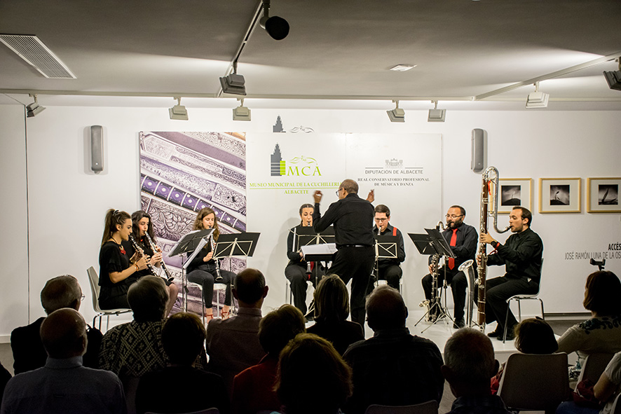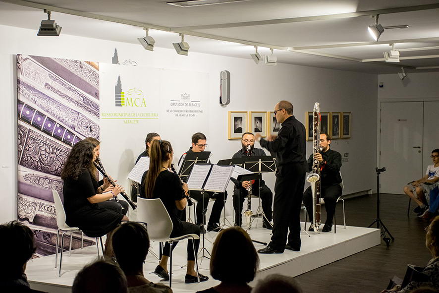 En esta ocasión, el Museo de la Cuchillería abrió sus puertas con acceso gratuito durante toda la jornada y, como actividad principal, a las 19 h. tuvo lugar el concierto “Ensemble de clarinetes”, agrupación formada por alumnos del Real Conservatorio Profesional de Música y Danza de Albacete, dirigidos por el profesor D. José Lozano.