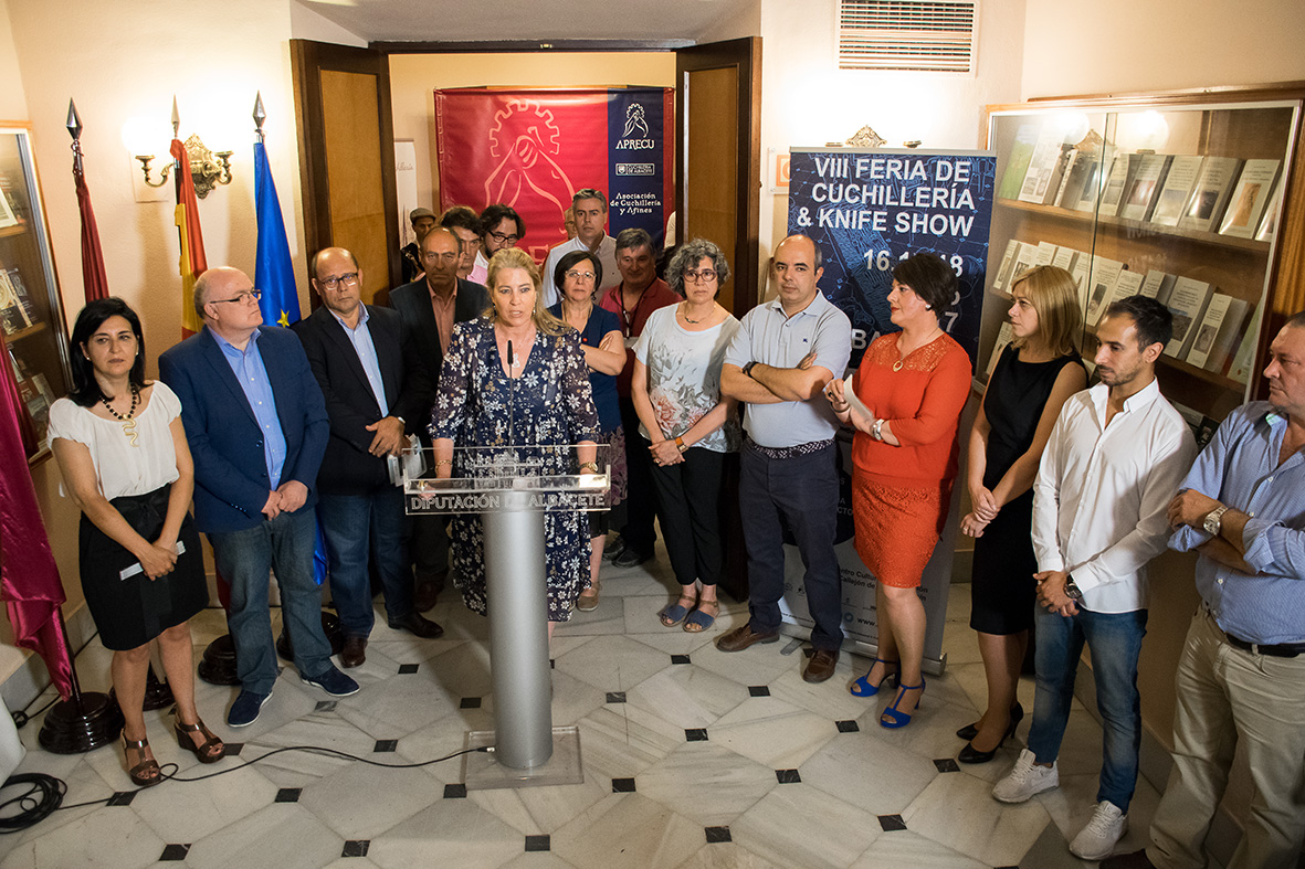 El pasado fin de semana, el Claustro de la Asunción albergó la VIII Feria de la Cuchillería Artesanal & Knife Show ‘Ciudad de Albacete’, organizada por la Asociación de Cuchillería y Afines, APRECU. Un evento que es una auténtica referencia tanto dentro como fuera del sector. El vendedor de cinto Manuel Fernández Fernández, ataviado con la característica indumentaria del vendedor de navajas tradicional, difundió y promocionó durante toda la Feria el Museo Municipal de la Cuchillería.