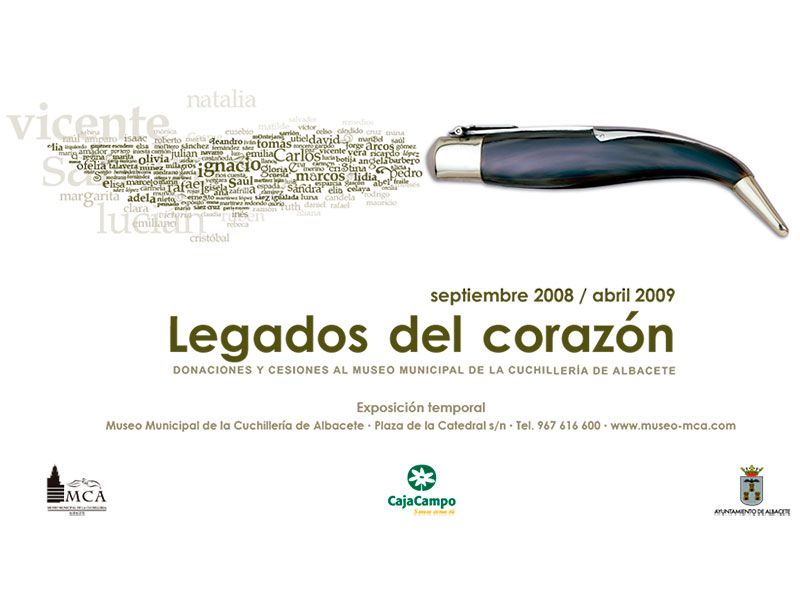 Con esta exposición, en la que se muestran alrededor de 250 piezas de cuchillería, objetos etnológicos y documentos, el Museo Municipal de la Cuchillería quiere rendir un merecido homenaje a todas aquellas entidades que han colaborado en la formación de los fondos de esta institución museística y a aquellas personas que con sus aportaciones la hacen posible, desprendiéndose de unas piezas, objetos o documentos que hasta ahora habían guardado celosamente, en muchas ocasiones como testimonio mudo de un pasado de dedicación al mundo cuchillero y, en otras, como el regalo gozoso o el recuerdo entrañable de un familiar o un amigo. En definitiva, sus sentimientos.