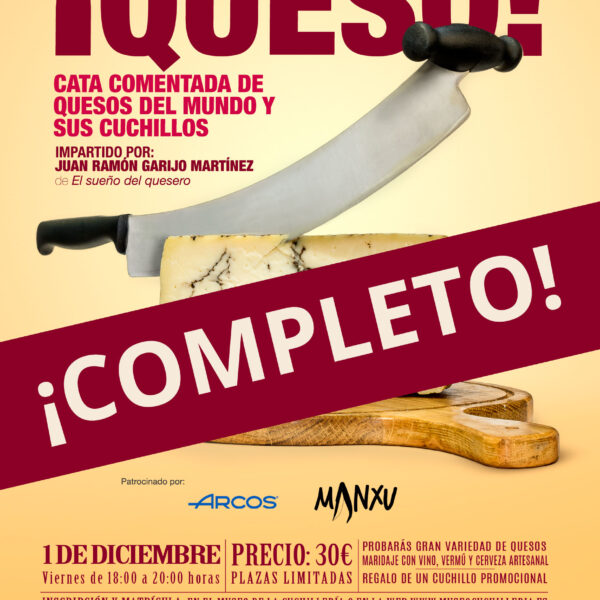 Por fin tenemos una CATA COMENTADA DE QUESOS DEL MUNDO Y SUS CUCHILLOS. De la mano de Juan Ramón Garijo Martínez de El sueño del quesero, conoceremos algunas variedades, de lo más curiosas, de quesos que existen en el mundo. Además se podrán ver los diferentes cuchillos que se utilizan para su corte, así como la diversidad de útiles que hay para cortar cada tipo de queso.