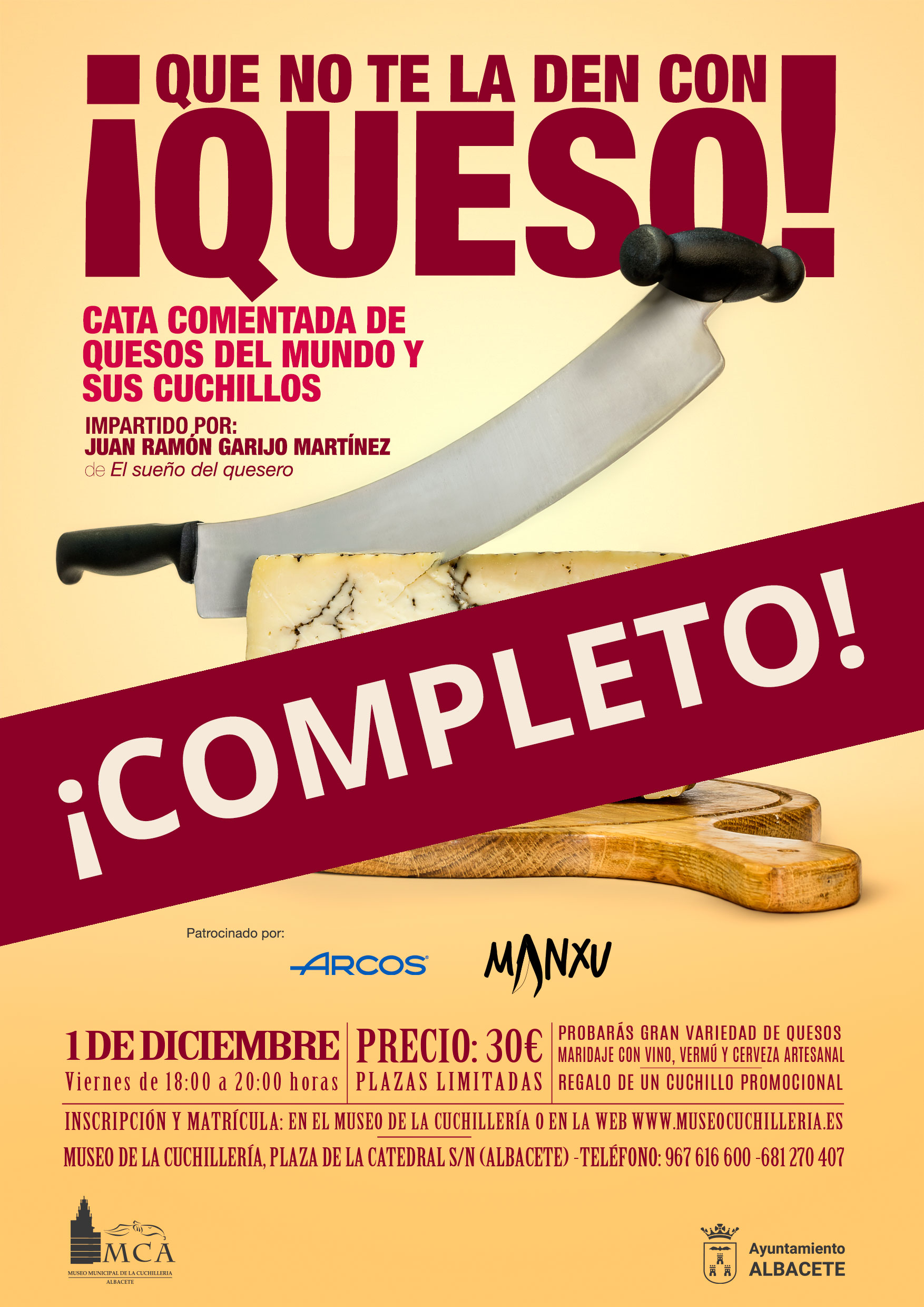 La inscripción se realizará en el Museo Municipal de la Cuchillería, en horario de apertura del Museo o en la web (www.museocuchilleria.es)