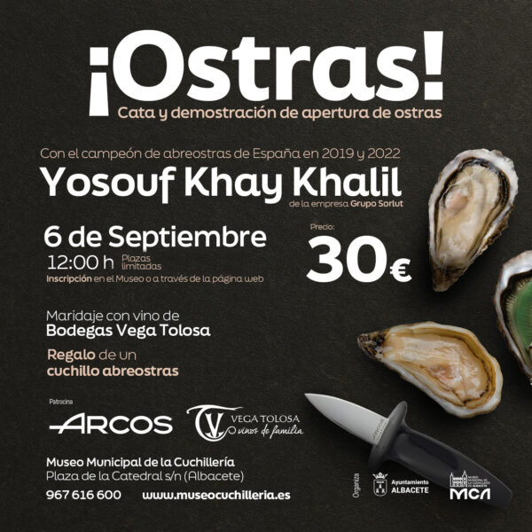 Este año celebramos el XXI Aniversario del Museo Municipal de la Cuchillería. Como en ediciones anteriores, te proponemos una nueva jornada de la clásica CATA Y DEMOSTRACIÓN DE APERTURA DE OSTRAS en el MCA.